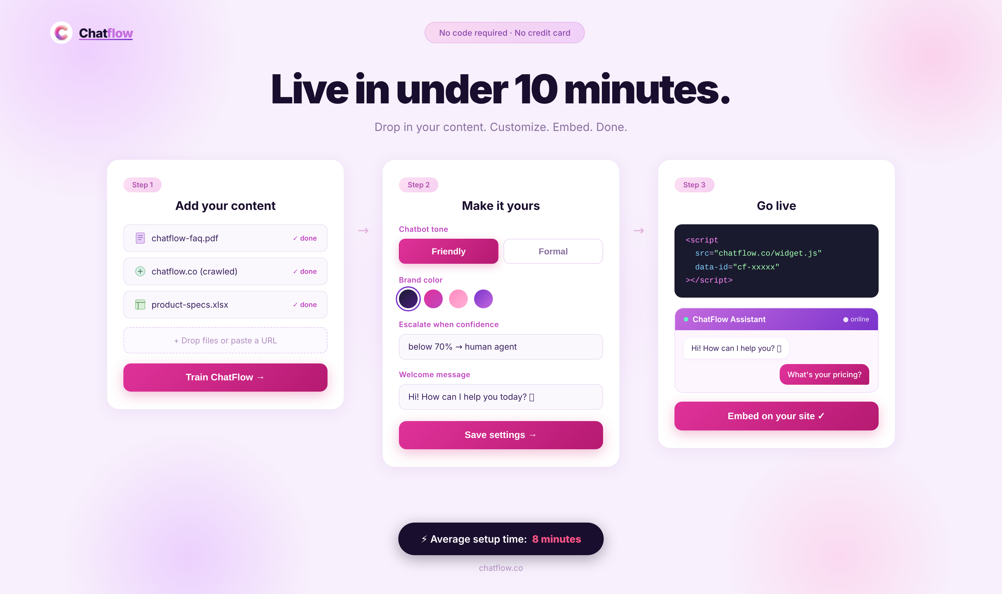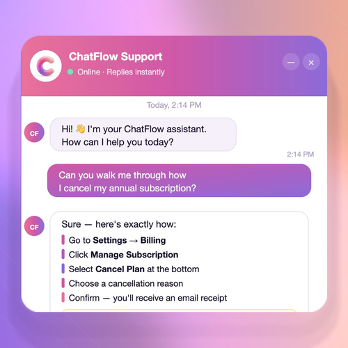 Users consistently highlight how fast ChatFlow goes from setup to handling real customer conversations. One Business Development Manager noted that it connected with their CRM in under 10 minutes and now handles over 85% of customer chats automatically — with no code involved. Teams especially appreciate the source citation feature, which builds customer trust by showing exactly where each answer originates.