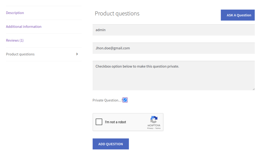 WooCommerce faq offers the flexibility to let customers ask questions privately, ensuring their inquiries are not visible to other users on the product page. This builds trust and encourages users to ask questions without hesitation.