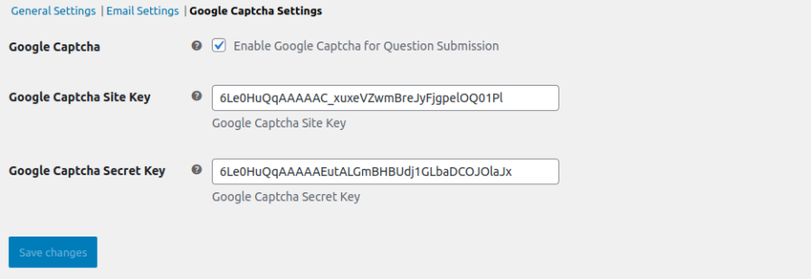 Secure your FAQ and question forms by enabling Google reCaptcha to block spam submissions. Simply configure the WooCommerce faq plugin with your site and secret keys to get started.