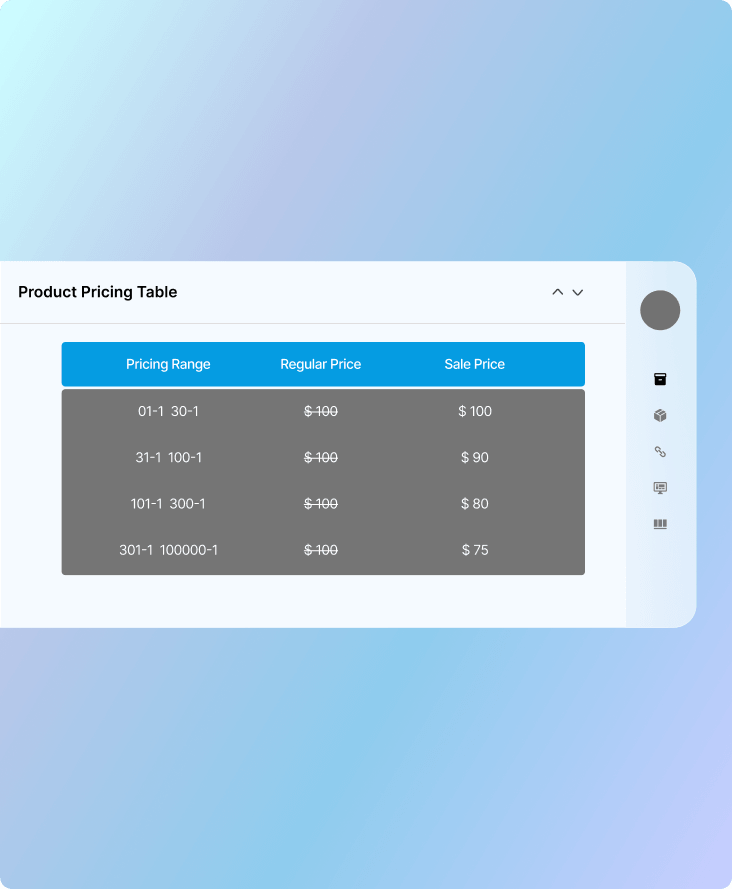 You can display clear pricing tables on product pages so customers can see rates based on their measurements. Tiered discounts can also be offered depending on the quantity purchased.