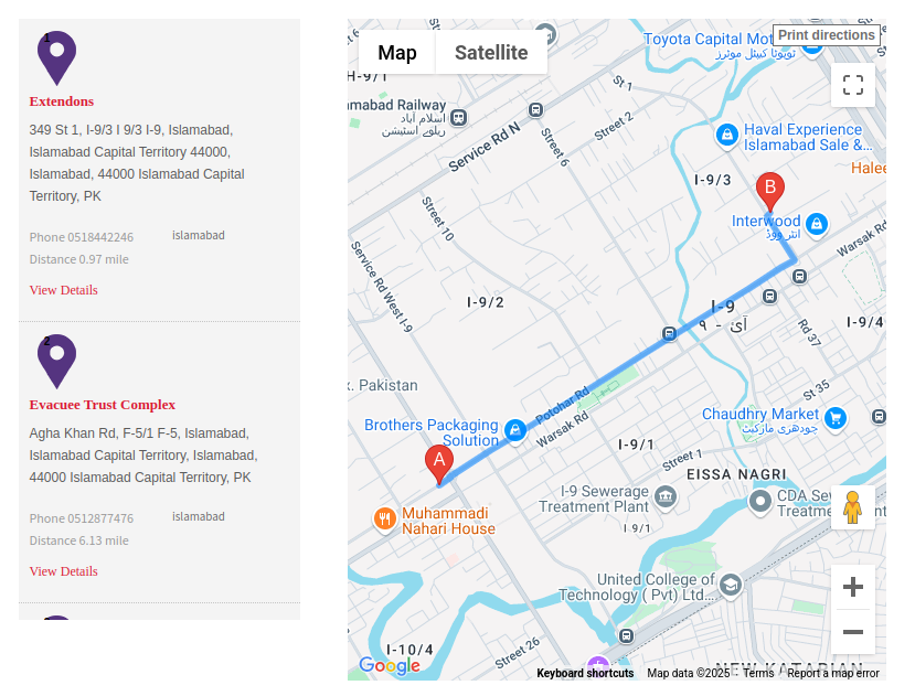 Customers can click on “Get Directions” to instantly see the best route from their location to the nearest store. The plugin displays step-by-step directions, including distance and estimated travel time.